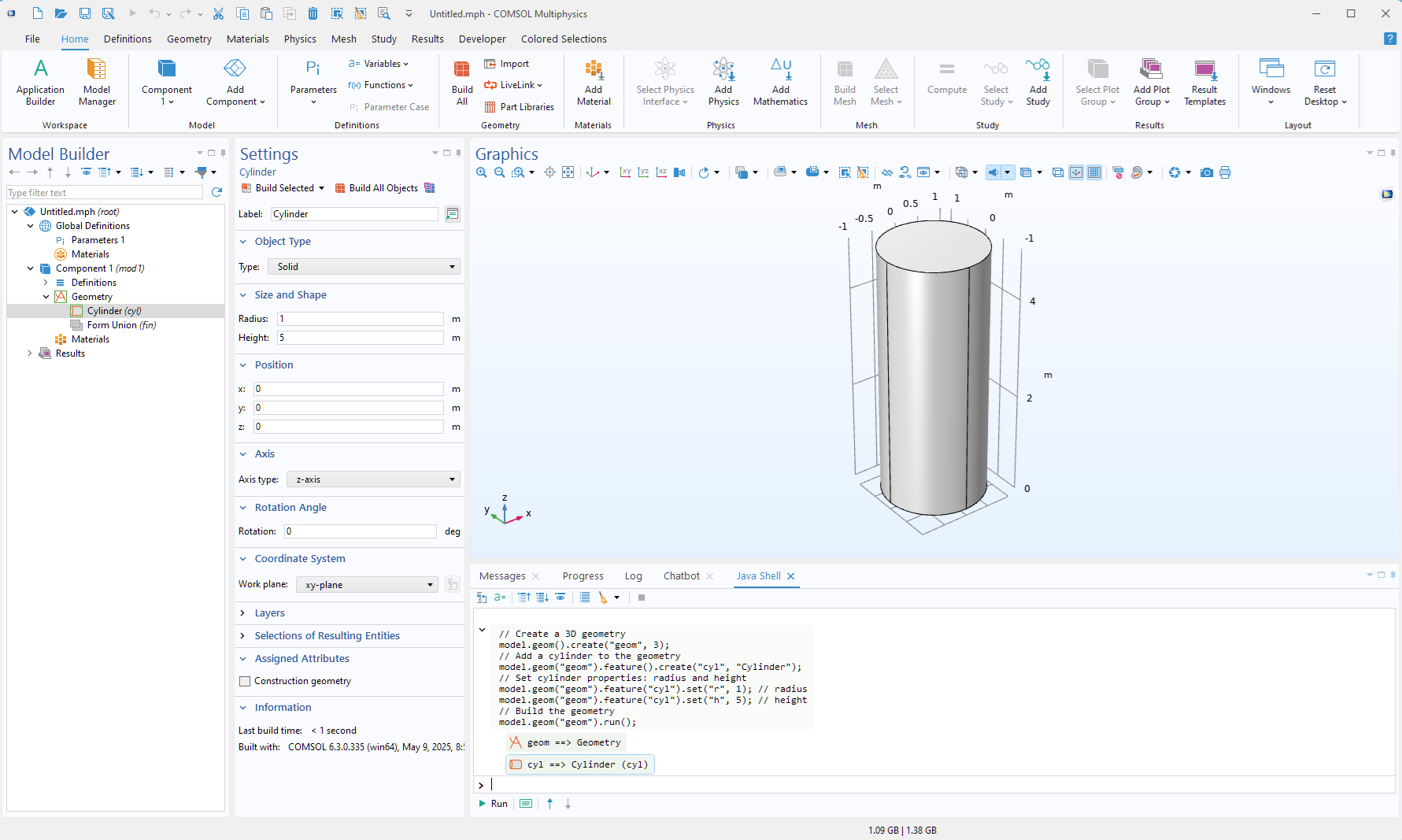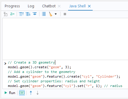 Click the Run button at the bottom of the Java Shell window to generate the cylinder.