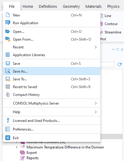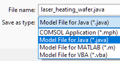 This will create a text file with a .java extension, which can be compiled into a Java .class file for use as a standalone Java component. This approach runs COMSOL Multiphysics® without the COMSOL Desktop® user interface. The .java file contains the entire model setup through API code. In this case, however, we will use the file solely to identify potential issues in the model setup. (Note that using this functionality is unrelated to compiling apps with COMSOL Compiler™.)