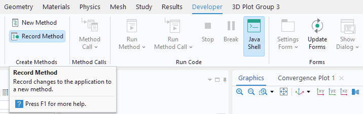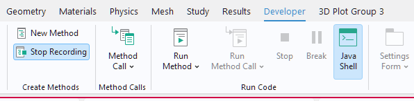 To learn more about how to work with the COMSOL API and the Java Shell window, view the “Running Code in the Java Shell Window” section of the Overview of the COMSOL API Learning Center article.