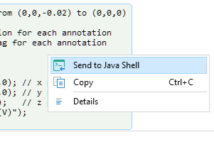 Now, repeat the procedure from before. Right-click the generated code, send it to the Java Shell window, and click Run to plot the annotations.