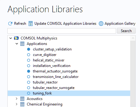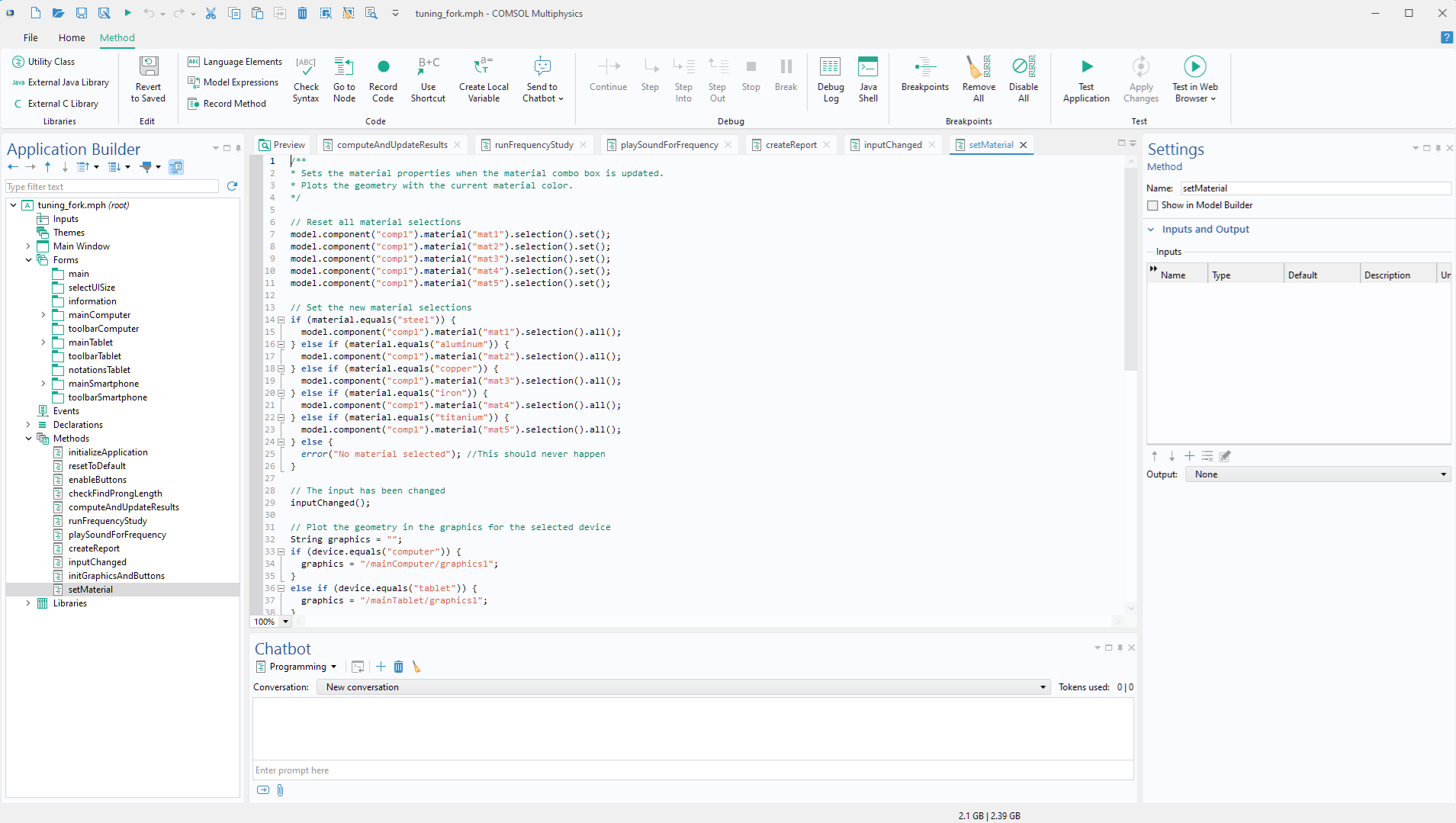 Another use of the chatbot functionality is to find subtle bugs in your code that go beyond simple syntax errors. To illustrate this, let’s use the Tuning Fork app from the Application Libraries, found under COMSOL Multiphysics > Applications. This tutorial app does not require any add-on products.